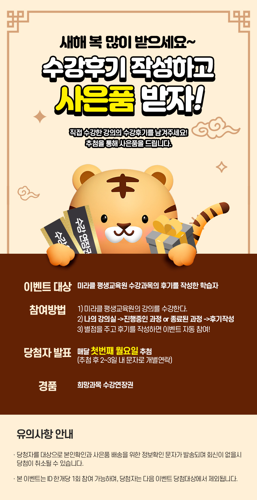 이벤트 대상으로 인정되오니, 수강기간이 종료된 수강생들께서는 이 점 염두해두시길 바랍니다.