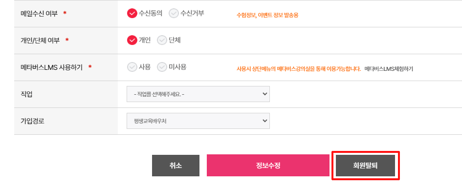 - 입력 후 강의 수강 이력이 있는 경우 : 실제 강의 판매금액 - 위약금 10% - 강의 수수료 - 일자공제