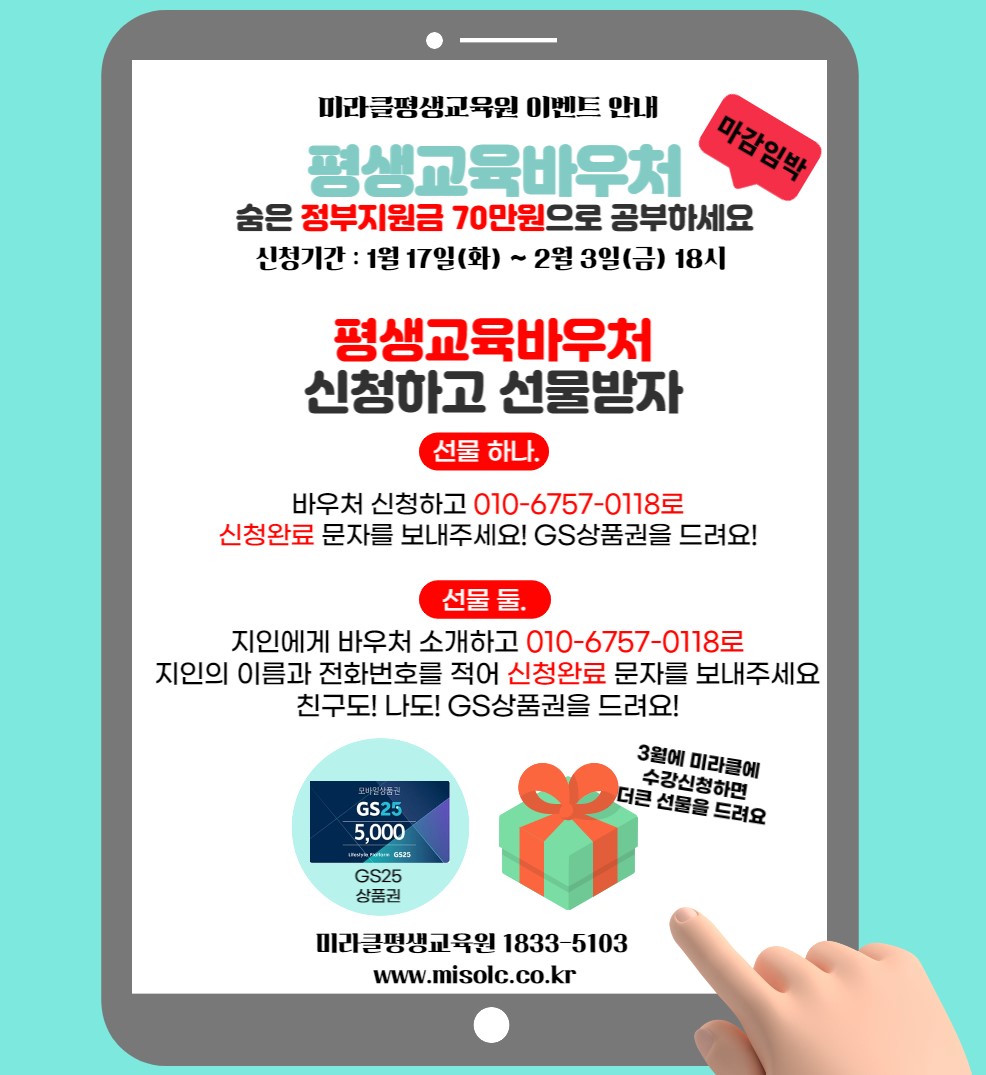 바우처 신청하고 010-6757-0118로 신청완료 문자를 보내주세요