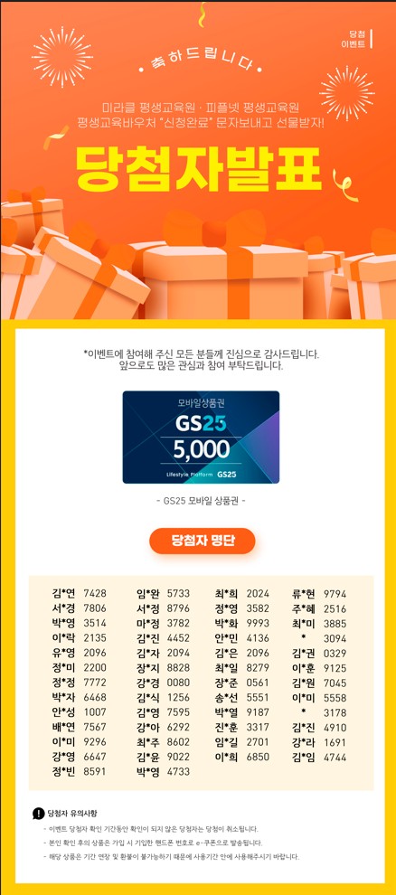 평생교육바우처 신청하고 선물받자! 이벤트 당첨자 발표안내