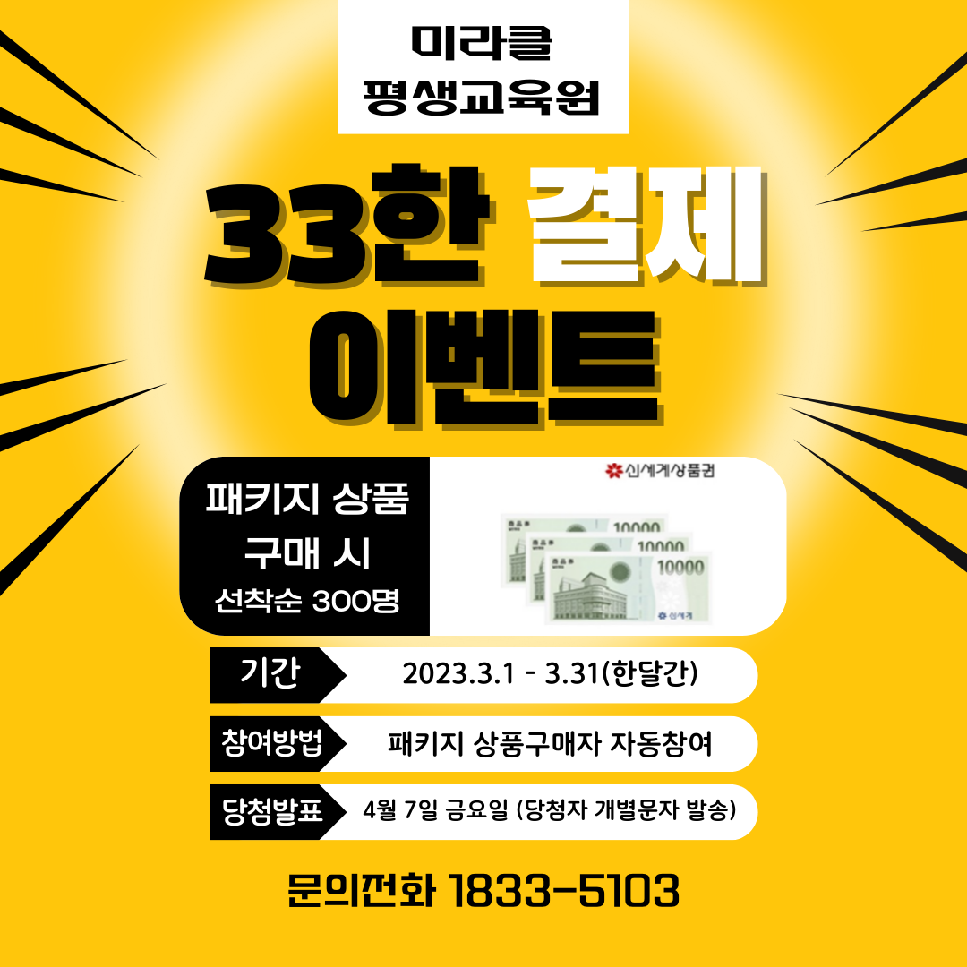 ▶참여방법 : 미라클평생교육원 패키지 상품 구매자 자동참여