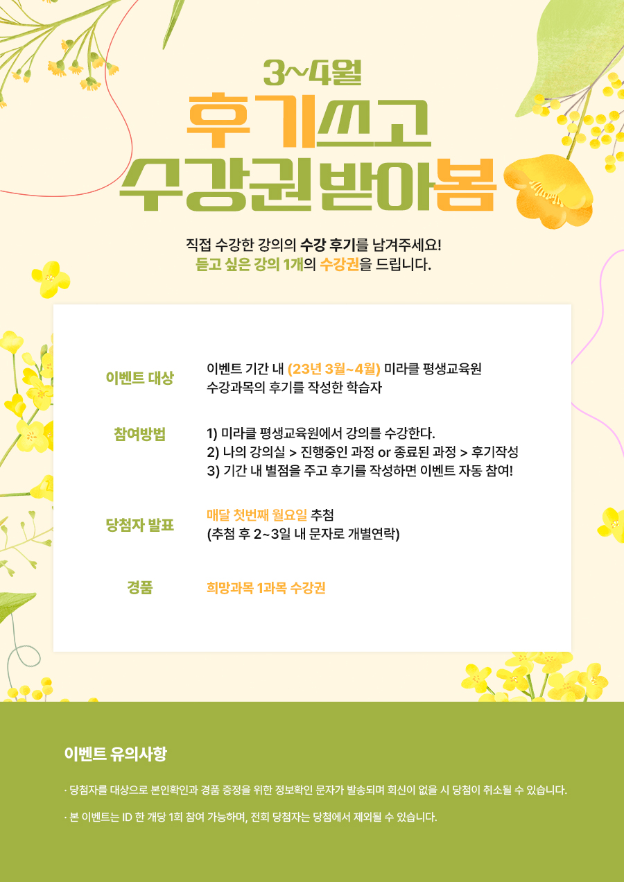 [3~4월 후기이벤트] 후기쓰고 수강권 받아봄