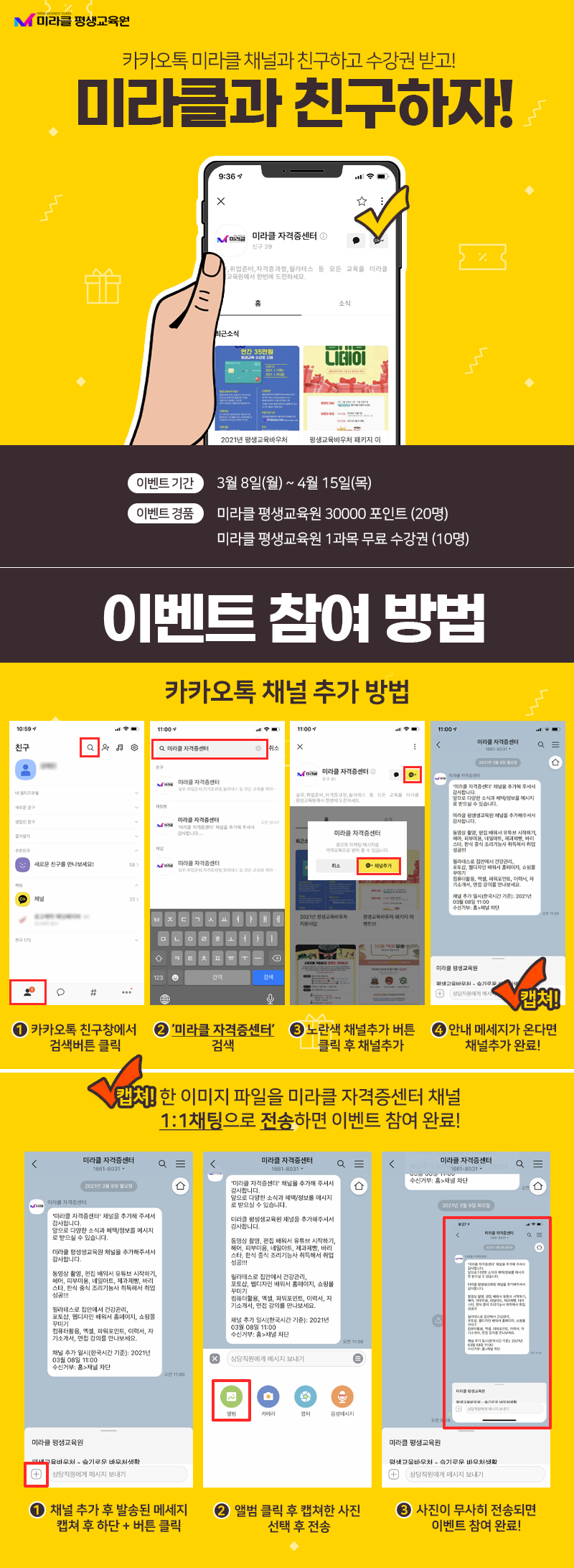 미라클과 카톡친구하고 수강권 받자!
