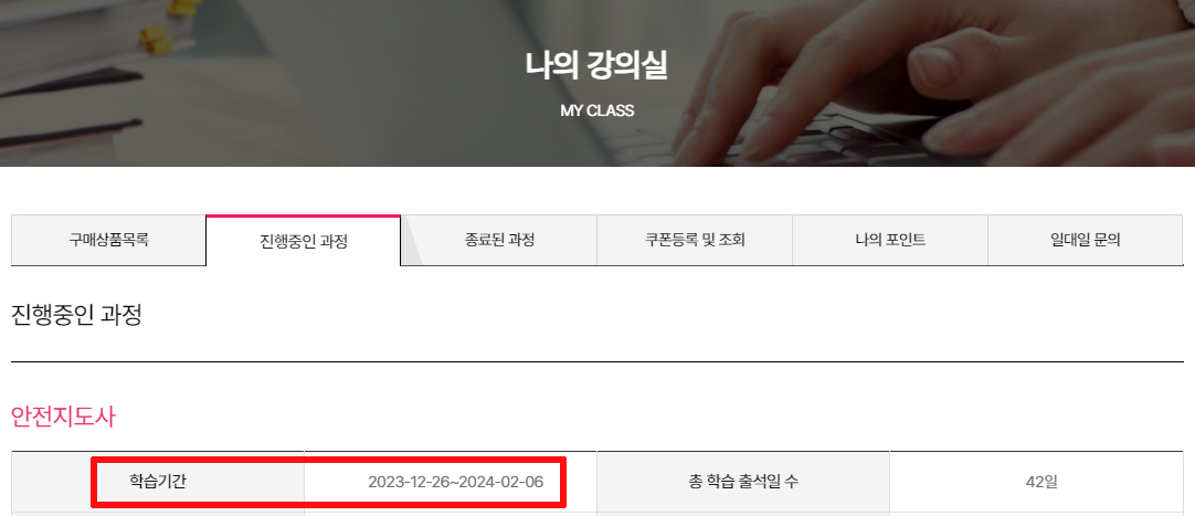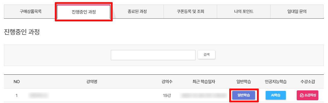 2) 강의 수강이력이 있는 경우 (강의 학습하기 버튼 클릭 시 강의 수강으로 간주)