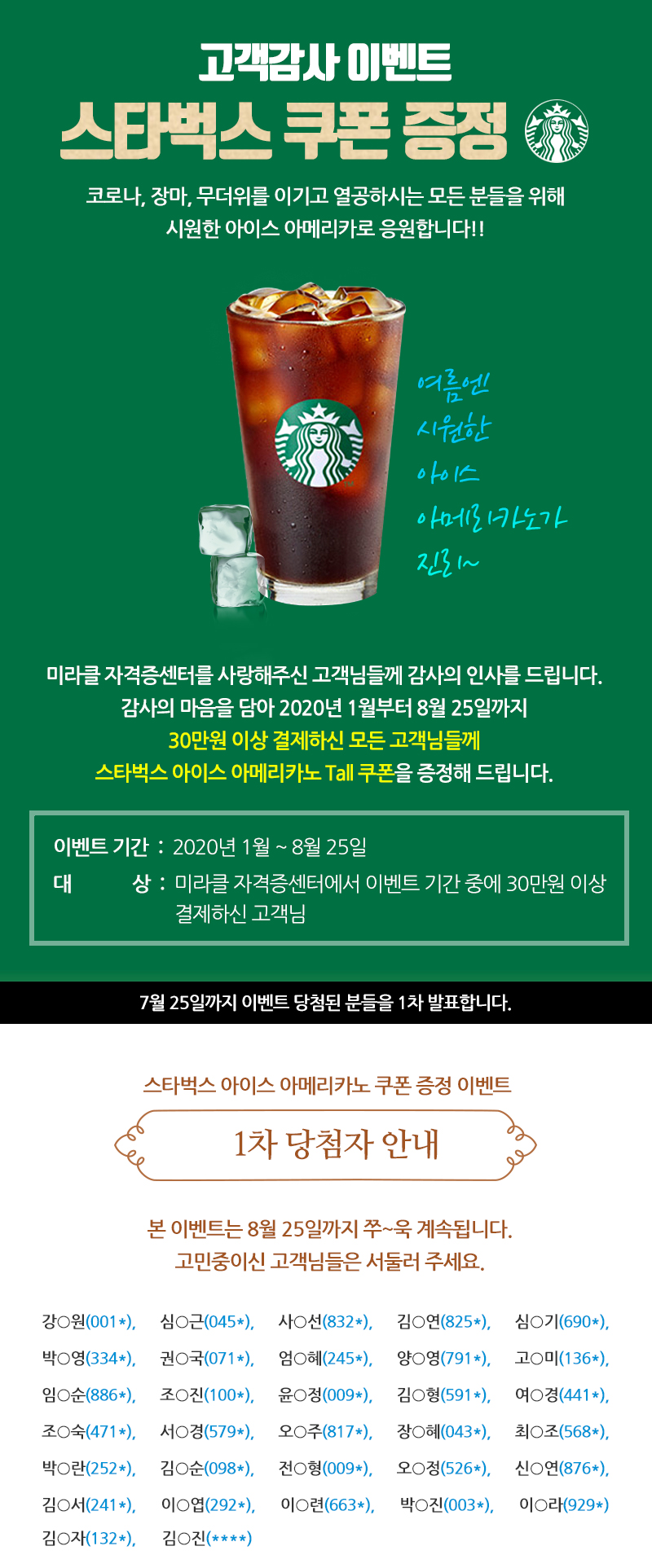 스타벅스 아이스 아메리카노 쿠폰 이벤트!! ★1차 당첨자 안내★