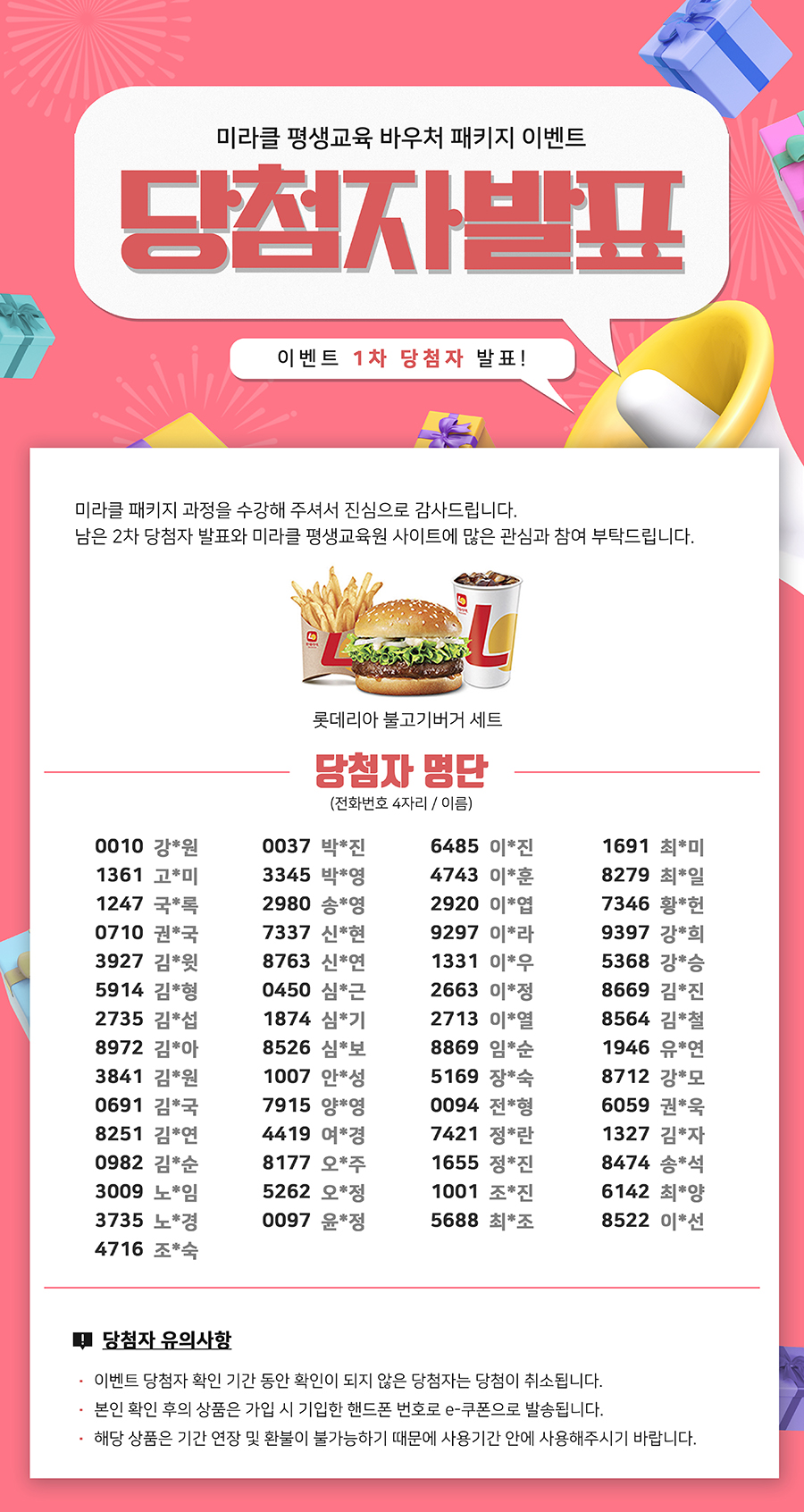 평생교육바우처 패키지 이벤트!! - 1차 당첨자 발표