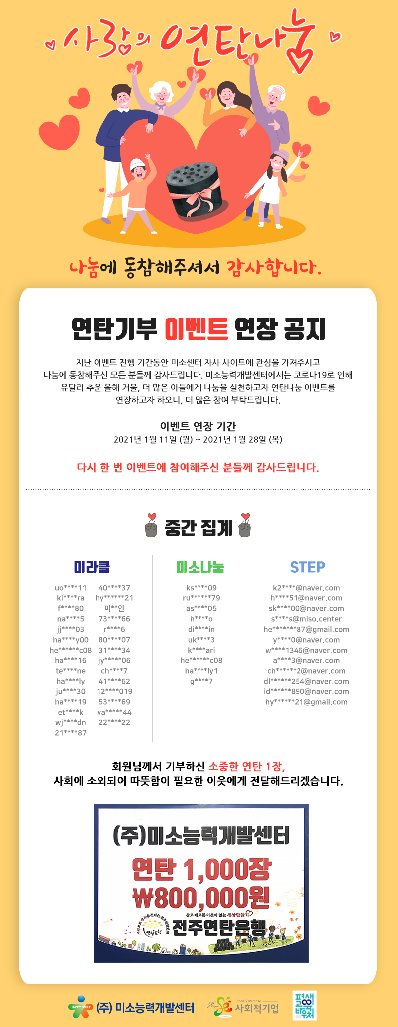 사랑의 연탄나눔 중간 집계 & 나눔기간 연장 공지