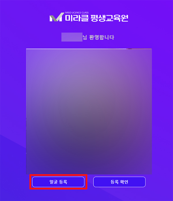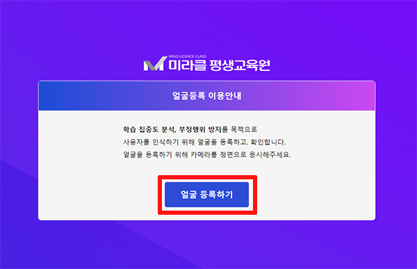 ① 미라클평생교육원 (www.misolc.co.kr) 로그인 후, 상단의 얼굴등록 메뉴 클릭