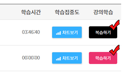수강 이력이 있는 강의 = 복습하기 버튼을 클릭하여 학습 시작