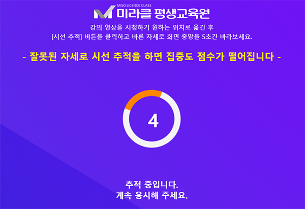 - 시선추적을 통한 강의 집중도 체크 (모바일 카메라 혹은 PC카메라 연결 필요)