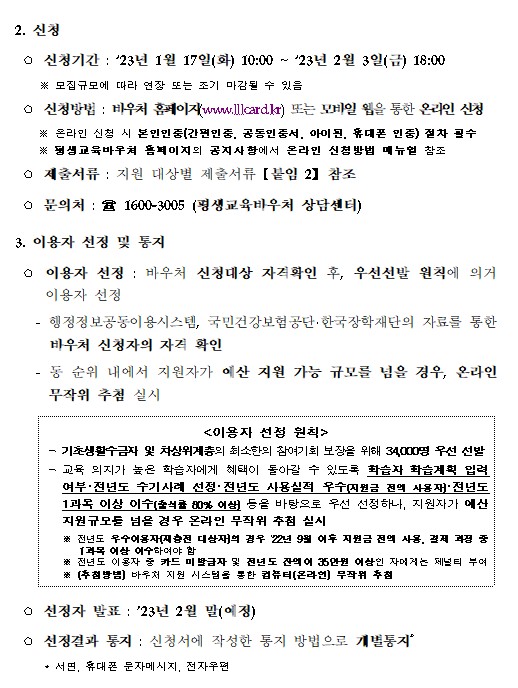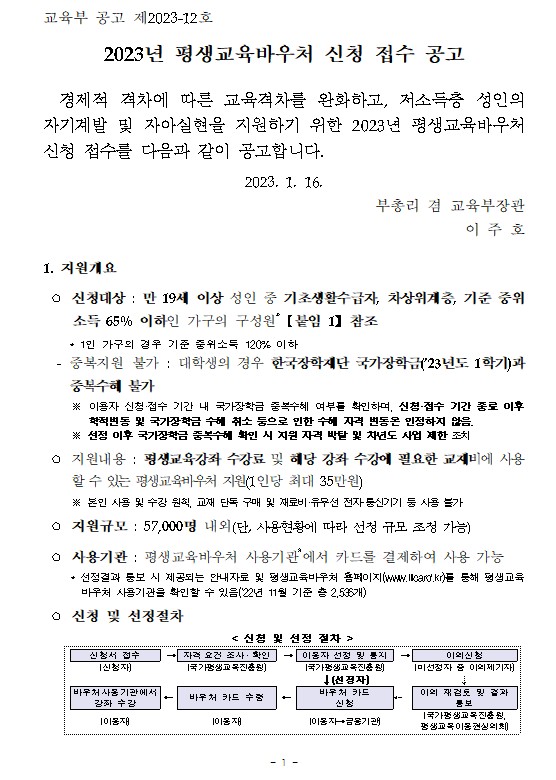 2023년 평생교육바우처 신청접수 공고 안내2023.01.19